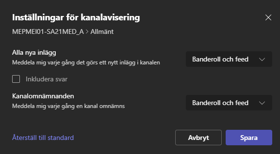 Om klassens team är tystat får du inte aviseringar.