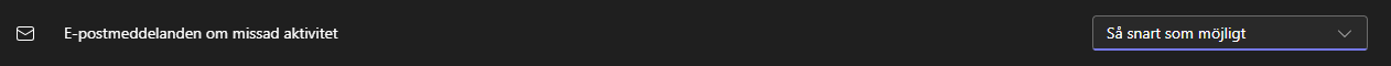 Ändra också E-postmeddelanden om missad aktivitet till "Så snart som möjligt".